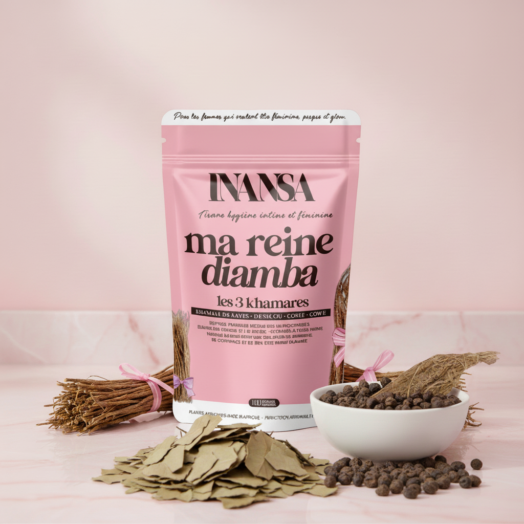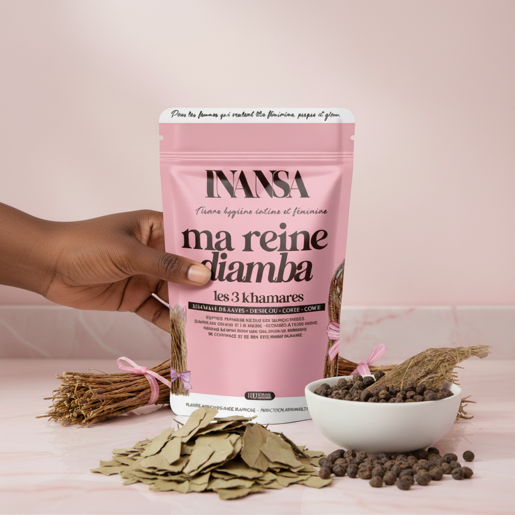 Ajoute Ma Reine Diamba à ta routine bien-être : une tisane naturelle et traditionnelle qui t’aide à purifier ton intimité, à prévenir les infections et à te sentir pleinement bien dans ton corps.