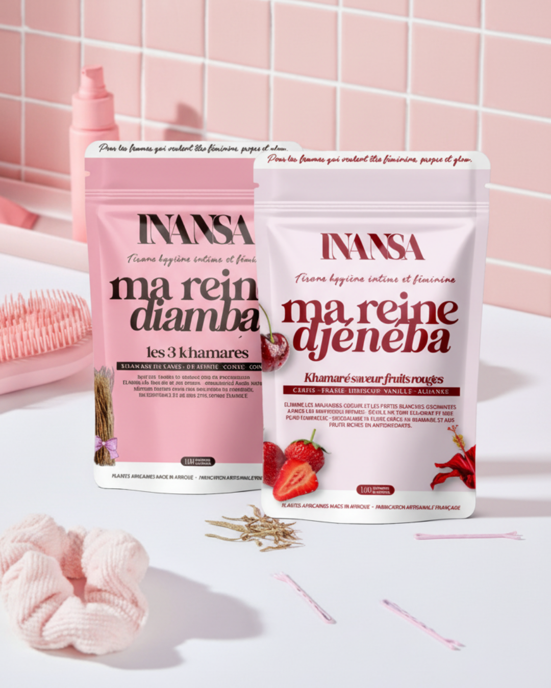 Pendant tes règles, Djénéba travaille en profondeur pour neutraliser les odeurs, purifier et t’aider à te sentir propre même les jours les plus compliqués. Après tes règles, Diamba prend le relais pour rééquilibrer ton intimité, purifier en douceur et t’aider à repartir clean, fraîche et parfaitement sereine.