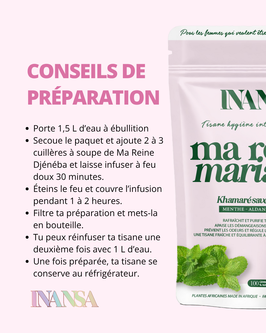 Tips : Après les règles, commence toujours par Diamba, c’est la tisane qui nettoie le plus en profondeur.