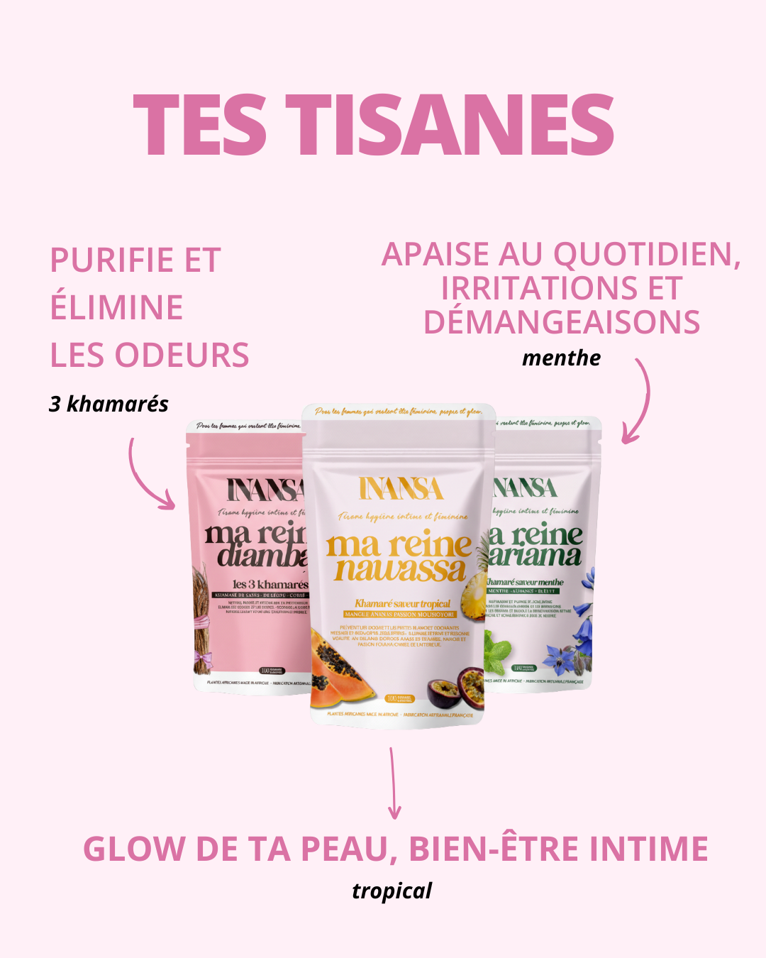 ✨ Une routine complète : 3 tisanes = action globale (odeurs + démangeaisons + entretien).